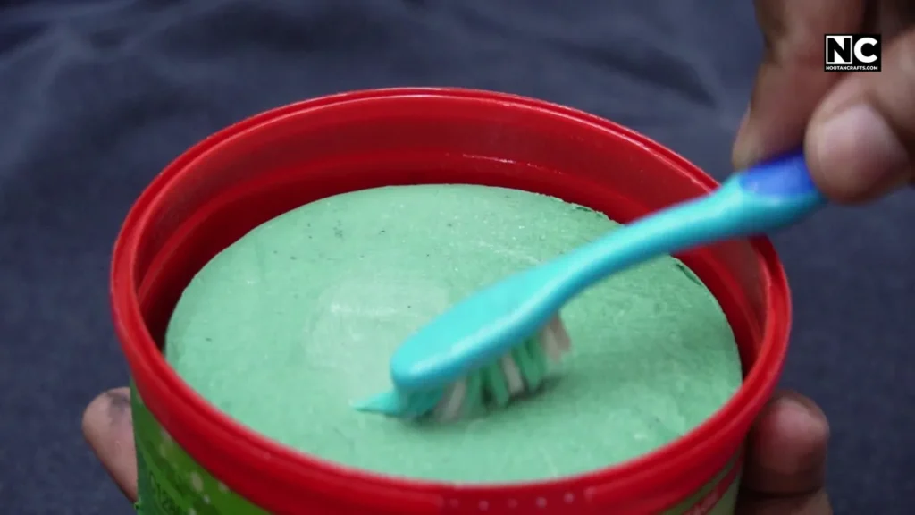 - Scrub gently in circles using an old toothbrush.